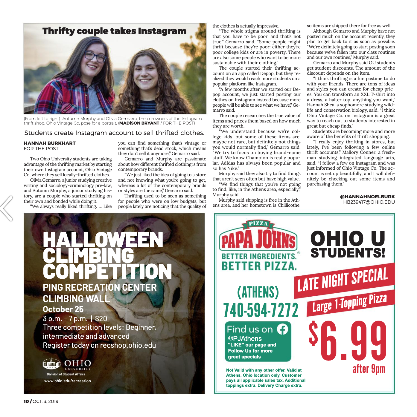 From 2019 to 2023, I have worked alongside The Post at Ohio University as a contributing photographer. Below are some of my images that appeared in the physical print during my freshman and senior year!